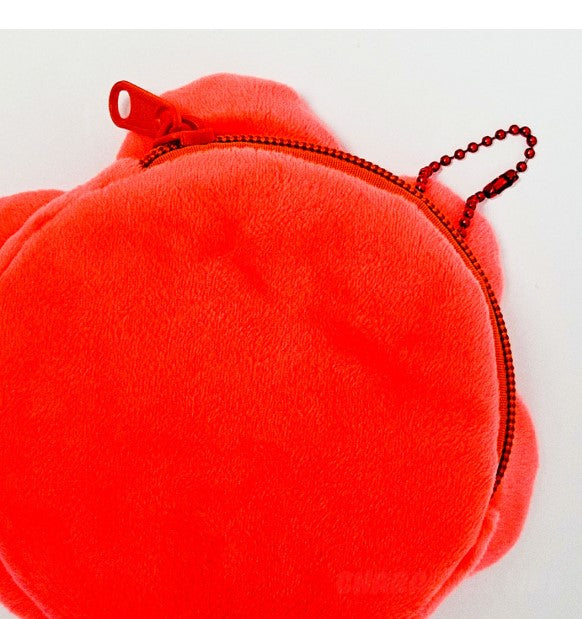 A Sanrio character flower bloomed. This coin pouch is a small wallet that can carry few things, such as coins, or earphones. It is attached with a chain so that you can hang it in your bag or keys. It roughly measures 5 inches across.